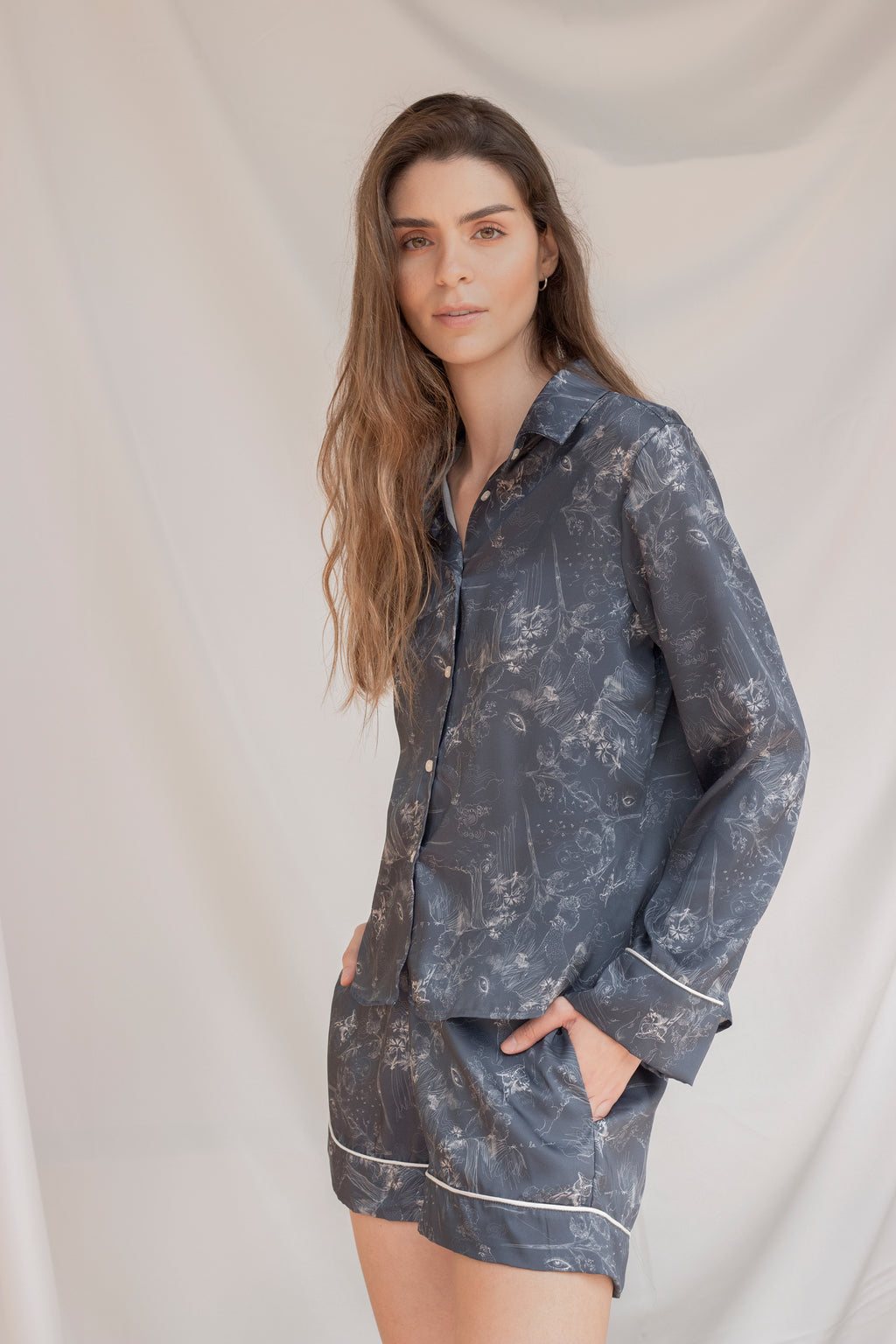 Blusa de pijama en poliéster reciclado 100%, con estampado.